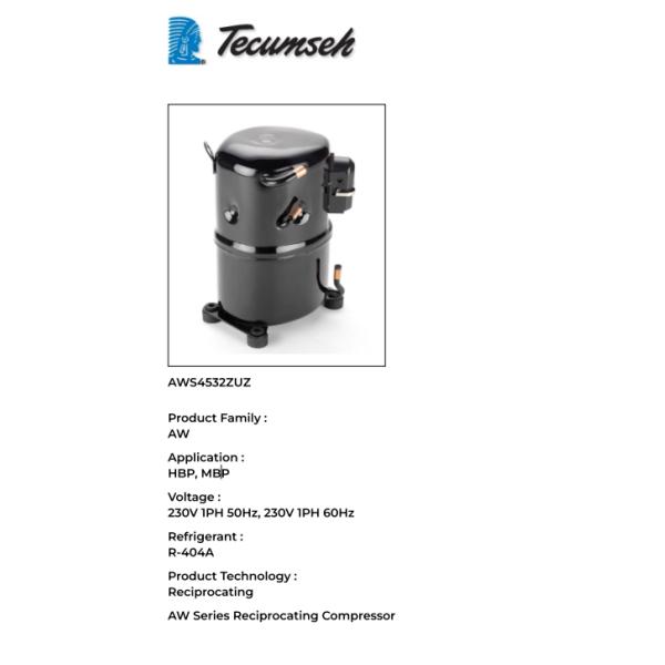 R404a AWS4532ZUZ Hermetic Piston Refrigeration Compressor 230V 1PH 50Hz or 60Hz Descrition